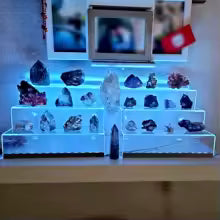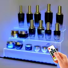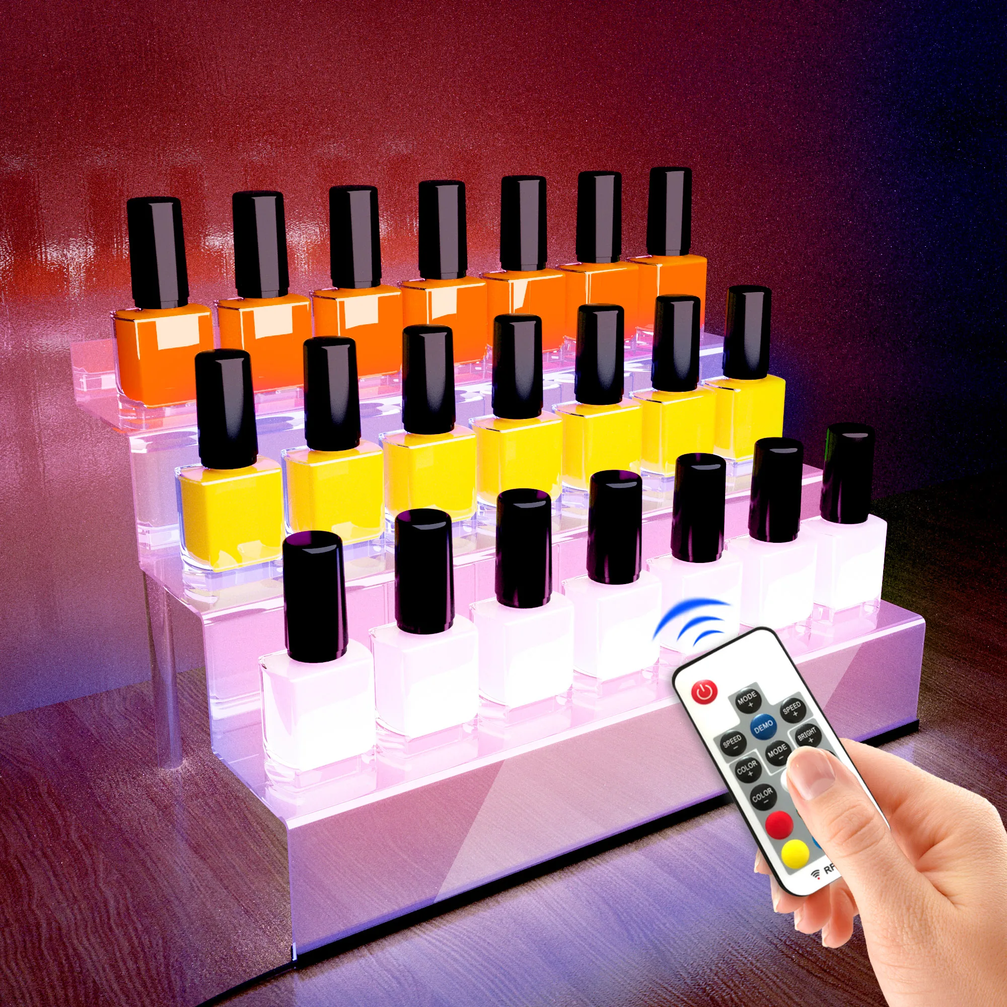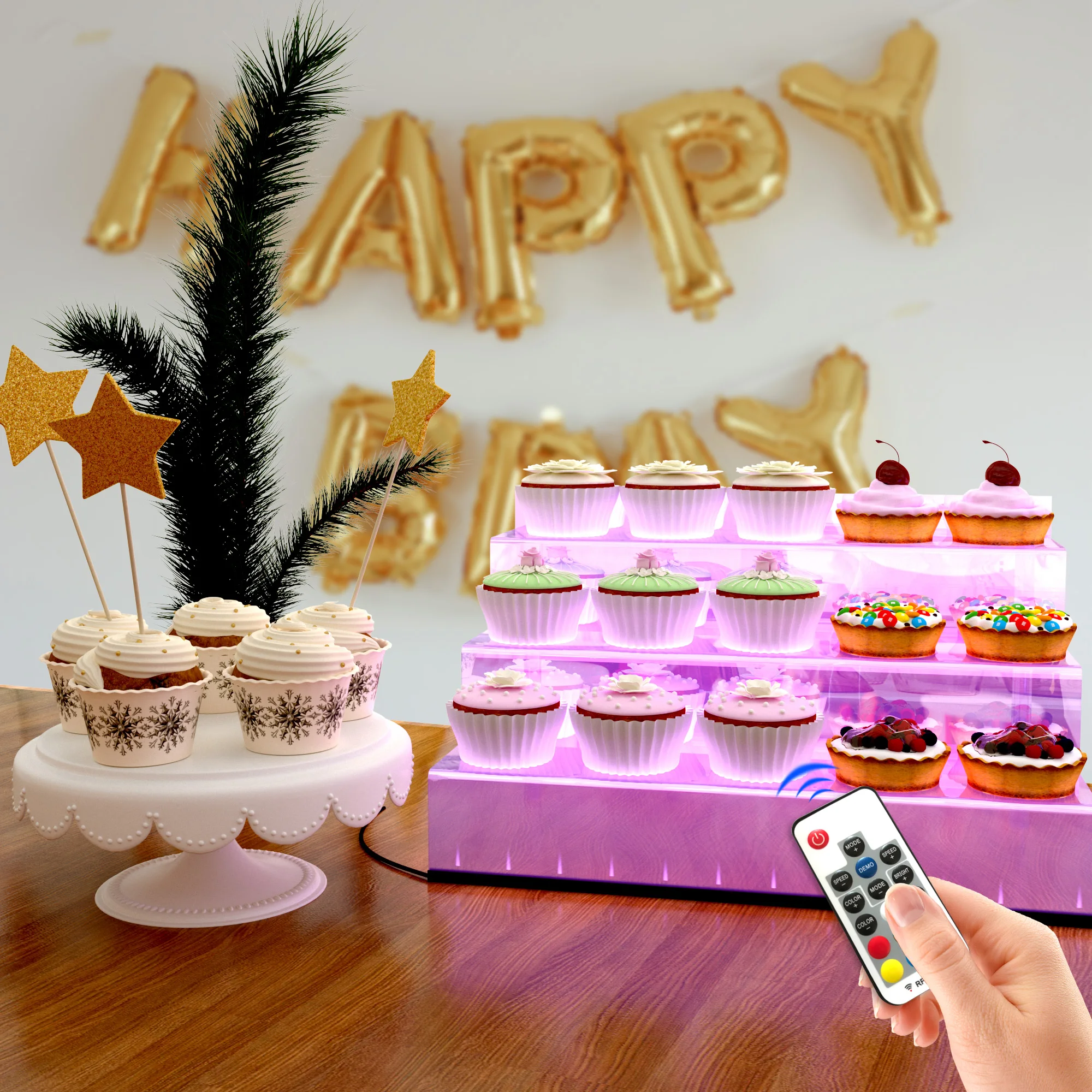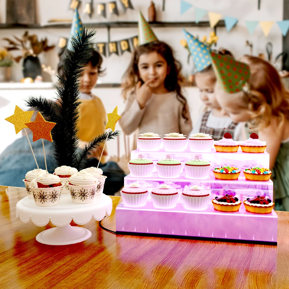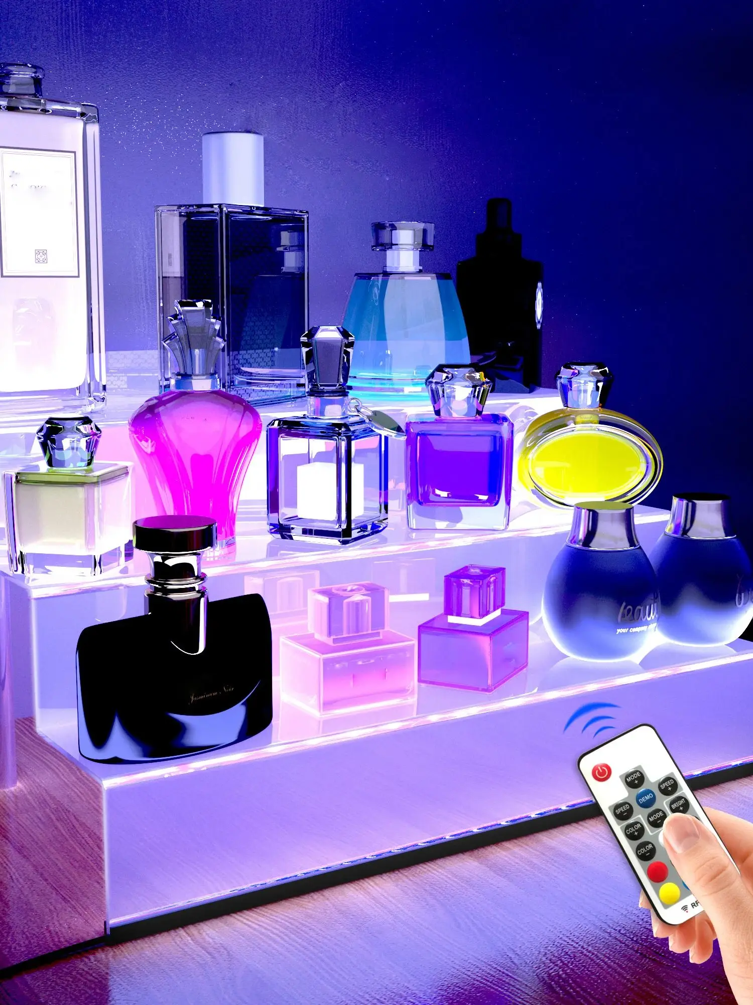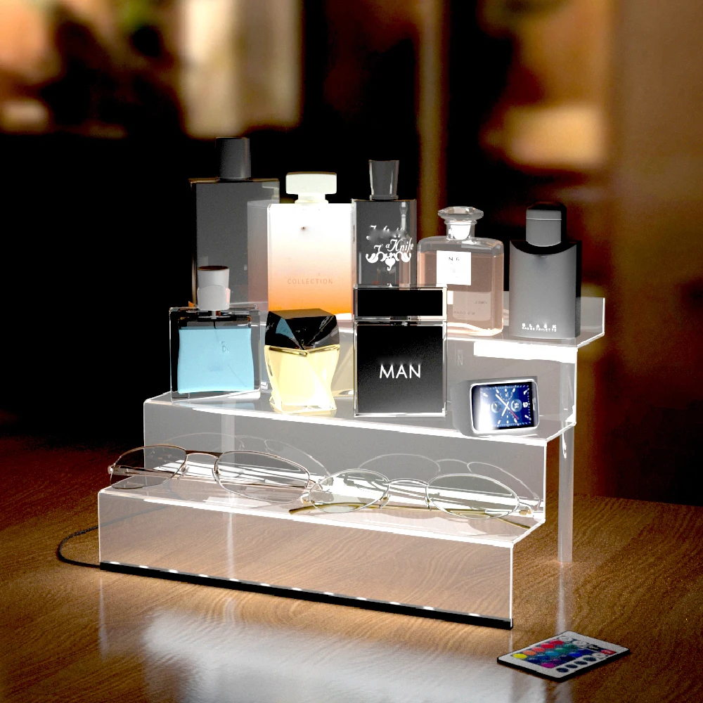 Akrylowy stojak ekspozycyjny z oświetleniem LED - 3-poziomowy stojak na perfumy i drabinkę, stojak na figurki, przezroczysty stojak na babeczki